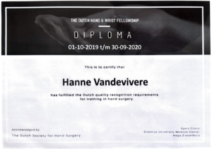 Dr. Hanne Vandevivere behaalde haar diploma geneeskunde aan de KU Leuven in 2013. Nadien specialiseerde ze zich in de plastische en reconstructieve chirurgie en hand- en polschirurgie. Zij genoot haar opleiding in het Sint-Trudo Ziekenhuis van Sint-Truiden, AZ Delta in Roeselare, AZ Groeninge in Kortrijk en UZ Leuven.